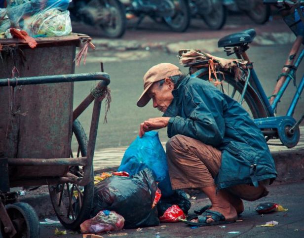 Hình ảnh ông lão nhặt thức ăn từ thùng rác lay động dân mạng